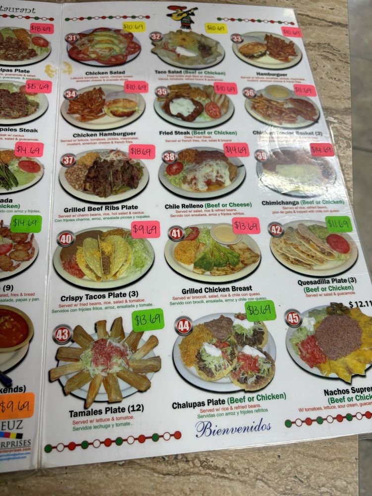The menu is a treasure trove for lovers of authentic Mexican cuisine. Start with a crispy taco for just $1.39 or savor nachos topped with your choice of meat, starting at $4.89. Seafood enthusiasts will rejoice at the shrimp quesadilla, priced at $9.99, or the refreshing shrimp soup for only $6.99.